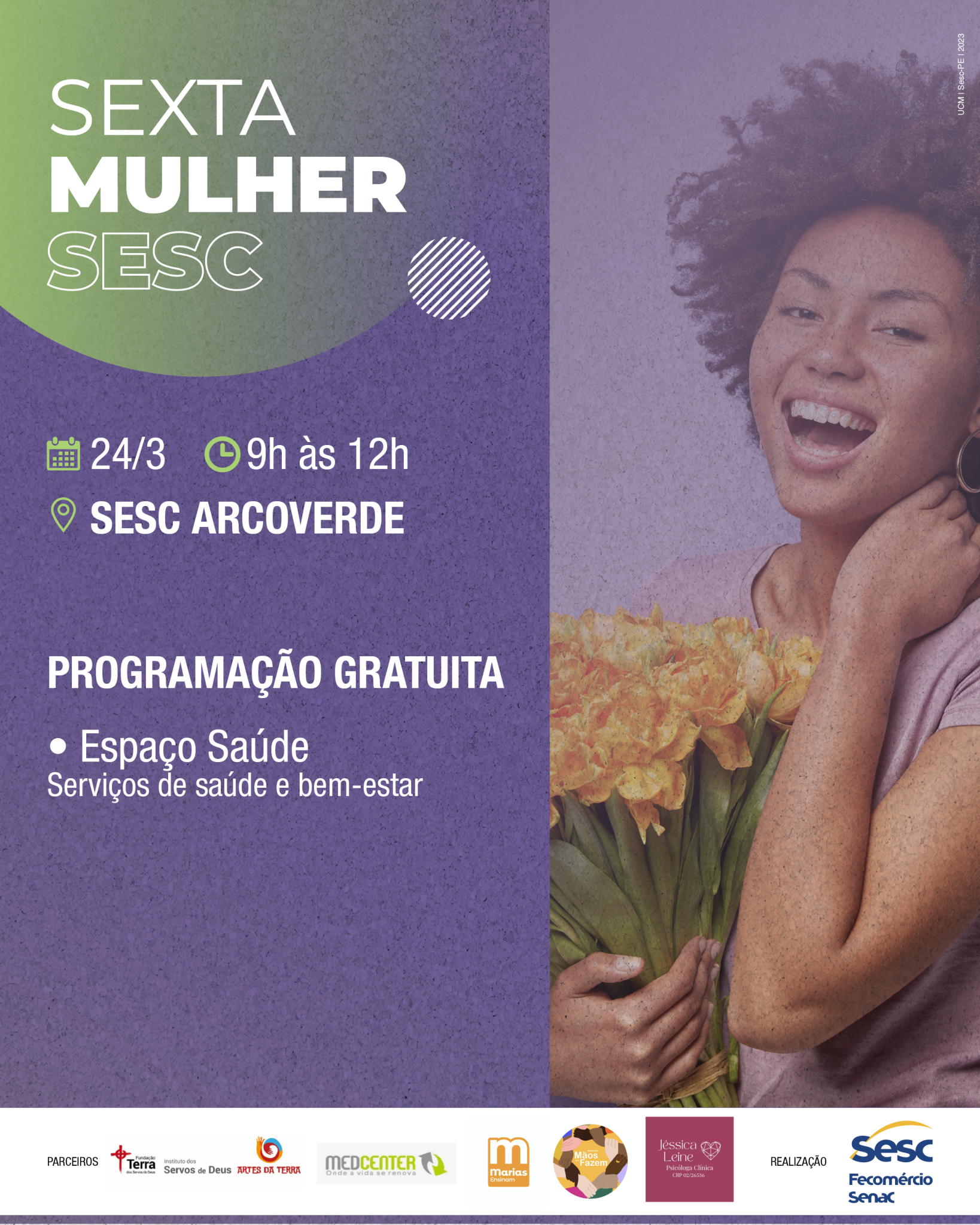Para celebrar o Mês da Mulher, o Sesc Arcoverde promove, a partir desta sexta-feira (10), o projeto Sexta Mulher Sesc, que vai oferecer uma série de atividades que têm a mulher como protagonista. As ações seguem nos dias 17, 24 e 31 de março, com acesso gratuito. Vão ser realizadas rodas de conversa, a Feira Giro Criativo, contações de história e serviços de saúde e bem-estar.