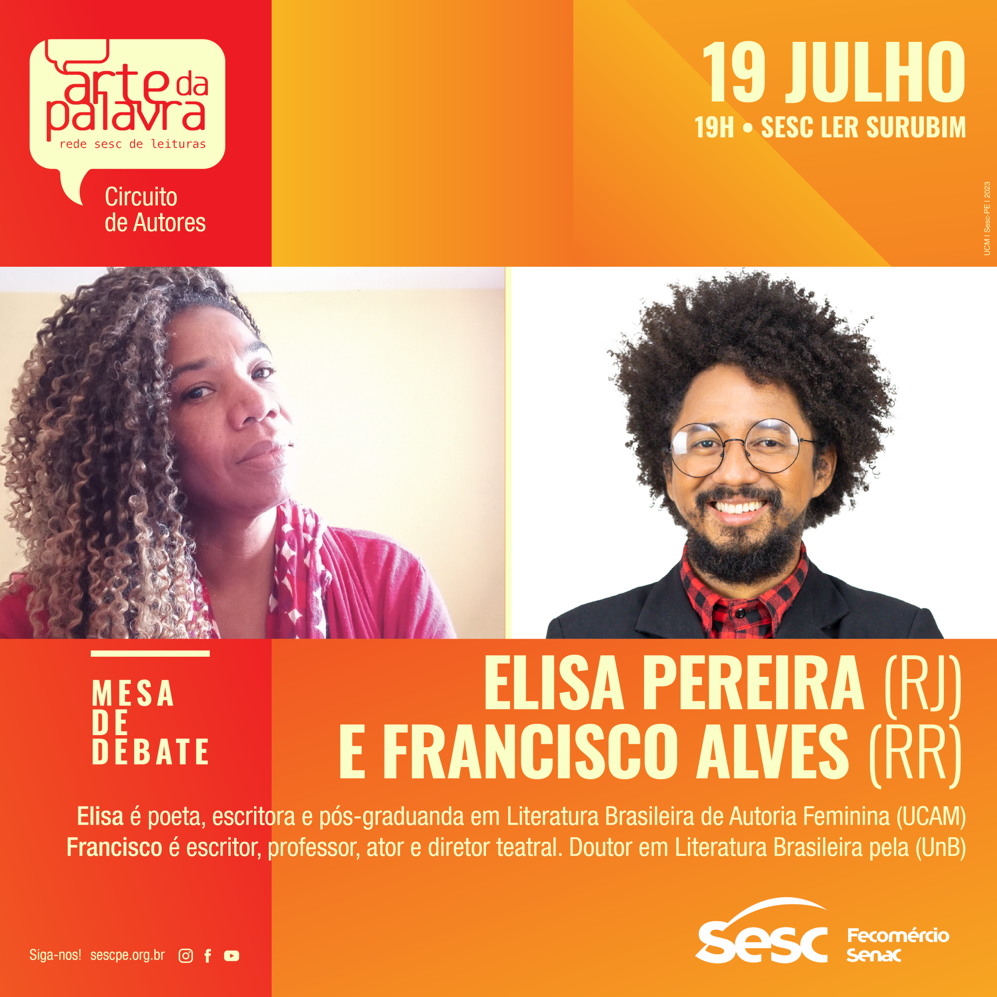 No dia 19 de julho, é a vez do Circuito de Autores, ação que tem como proposta realizar um debate entre dois escritores, neste caso, a poeta Elisa Pereira, que vive em Paraty, no Rio de Janeiro, e Francisco Alves, escritor, professor, ator e diretor teatral, do estado de Roraima. Além de conversar sobre suas obras, os escritores realizam o debate sobre “As (re)existências do corpo preto poético”. A apresentação será às 19h, no Sesc Ler, com entrada gratuita.