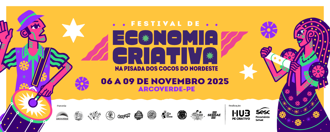 Arcoverde se prepara para mostrar o que há de melhor em termos de cultura, gastronomia e empreendedorismo produzidos na cidade, tendo como principal elemento o samba de coco. De 6 a 9 de novembro, o Sesc realiza o 5º Festival de Economia Criativa – Na Pisada dos Cocos do Nordeste, uma ação do HUB PE Criativo que este ano tem como correalizadores os grupos de coco Fulô do Barro, Erêmin, Quebra Coco Aliança, D’Malandro, En’cantos de Coco, Irmãs Lopes, Samba de Coco Raízes de Arcoverde, Pisada Segura e Trupé de Arcoverde.