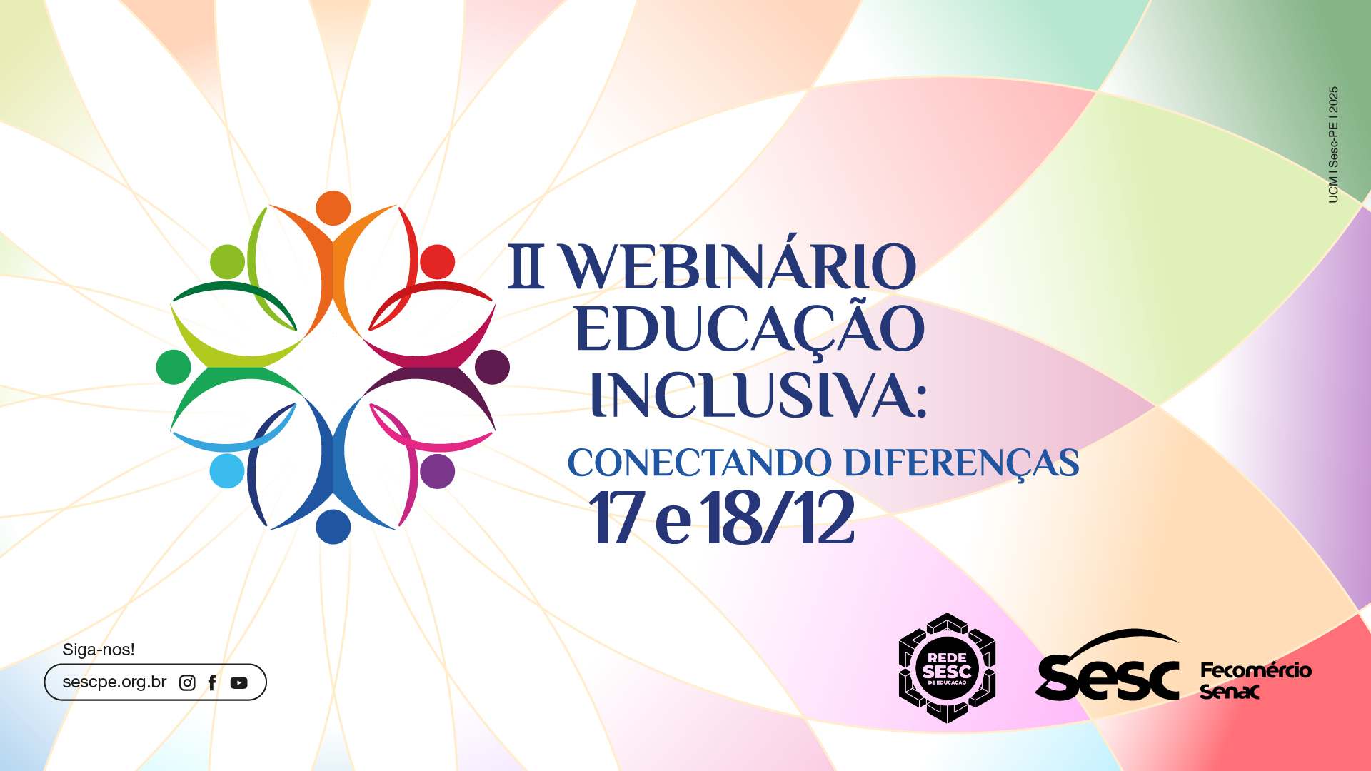 A educação inclusiva no Brasil tem enfrentado uma série de obstáculos como a falta de recursos e uma formação profissional adequada. Pensando em discutir o tema e aprofundar ideias, o Sesc Pernambuco, em parceria com o Departamento Nacional do Sesc, vai realizar, nos dias 17 e 18 de dezembro, o II Webinário de Educação Inclusiva. As inscrições já estão abertas no site https://eventos.sescpe.com.br/webinarioeducacaoinclusiva/.