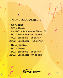 Home Notícias Confira o funcionamento do Sesc no Carnaval 2026 Card_Funcionamento Carnval-06