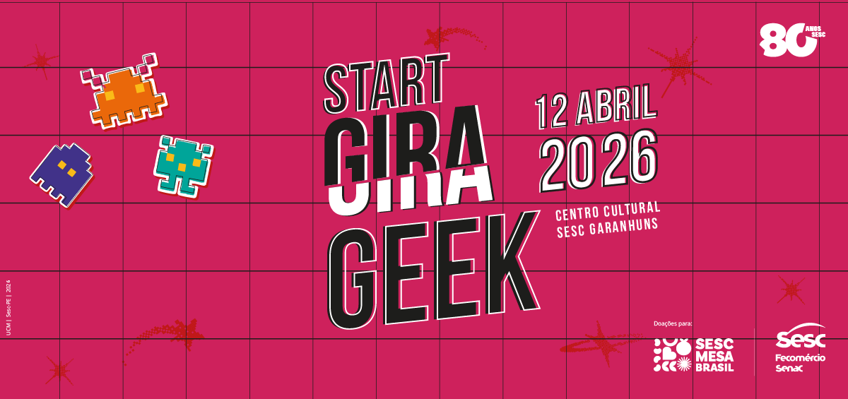 O esquenta para o maior evento geek do Agreste Meridional de Pernambuco já está em fase final de preparação. É o Start Gira Geek que o Centro Cultural Sesc realiza, no sábado, dia 12 de abril, das 10h às 20h, em Garanhuns. O complexo cultural vai promover diversas atividades da cultura pop, antecipando o Gira Geek 2026, que acontece de 16 a 18 de outubro. Os ingressos já estão à venda no site de eventos do Sesc Pernambuco (https://eventos.sescpe.com.br/startgirageek2026-698103/).